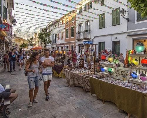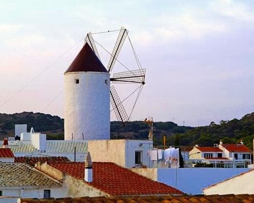 Es Mercadal es el centro geográfico de la isla, su fundación data de la época de la reconquista y su núcleo urbano se concentra alrededor de la Iglesia de Sant Martí y del antiguo molino hoy en día reconvertido en un restaurante. Por sus calles de casas bajas y de gran sencillez estética, nos encontramos con toda la pureza de una población de origen rural, donde la vida de sus gentes sigue fluyendo de forma natural, como siempre lo han hecho. Ir descubriendo, a ritmo pausado, los secretos que nos ofrece cada rincón del pueblo transmite unas sensaciones de armonía fáciles de explicar: Cas Sucrer: tienda de dulces artesanales por excelencia de la isla, ponerse en manos de un artesano para hacerse unas abarcas a medida, degustar los productos recién salidos de la tierra en los restaurantes de cocina tradicional menorquina, El Aljub: una impresionante cisterna construida durante la dominación británica para el almacenamiento de las aguas pluviales o simplemente descubrir los entresijos de sus encantadoras calles. Subir a la montaña de El Toro: Obviando lo que dicen las leyendas, su origen etimológico podría ser árabe y significa el punto más alto. En su cima podremos descubrir un santuario y una torre cuadrada del s.XIV, además de una visión panorámica excepcional de la isla. La planura de Menorca permite observar toda su extensión en los días claros. Mercadal es el punto de partida idóneo hacia el principal centro de deportes náuticos de la isla: Fornells. Fornells: Su impresionante bahía es un paraíso para los amantes de la náutica, en especial del windsurf, ya que la fuerza del viento de tramontana es el mejor motor para navegar en sus calmadas aguas. Desde su puerto se organizan excursiones marítimas hacia las playas del norte, una costa sorprendente donde descubrir desde recónditas calas de cristalinas aguas a largas y agrestes playas abiertas al mar. Esta población pesquera mantiene intacta toda la esencia del mediterráneo, un paisaje idílico que transmite una sensación de tranquilidad incomparable. Más aún cuando se tiene el placer de degustar una caldereta de langosta, el plato más preciado de la isla, en los restaurantes del pueblo.